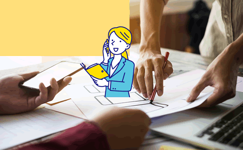 相手の意向を把握するため、一緒に打ち合わせに同行。サイトの方向性を3者で考え、成果物に一貫性を持たせます。