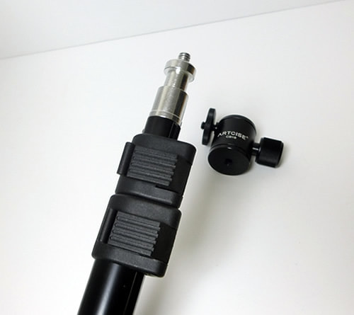 被写体の後方・高い場所に配置。背景から浮かび上がるように見える。フレキシブルアームがあると固定できます。