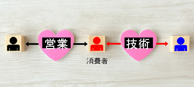 たまにメリットとベネフィットがごちゃ混ぜのプロモーションを見かけます。技術者と営業マンのフィールドを分けると理解しやすいです。