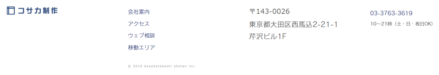 サイトの最下部領域。利用頻度は少ないので、大切なコンテンツ群を再度アピールしてもよろしいかと。